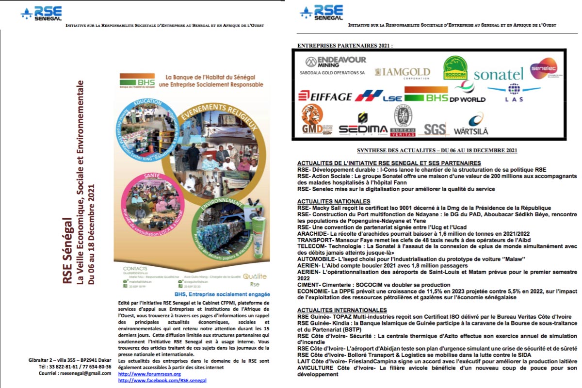 Politique QSE RSE Sénégal : La Veille Economique, Sociale et Environnementale du 09 au 21 Janvier 2023Lire plus