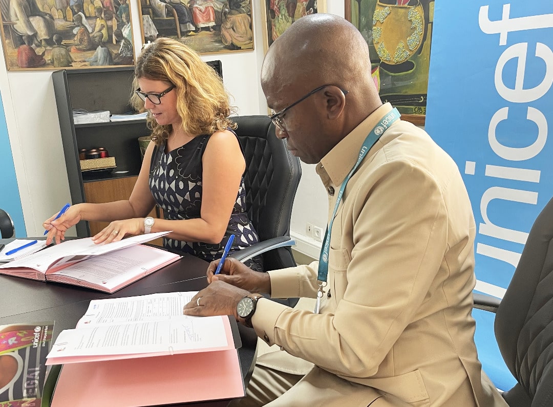 A la veille de la célébration de la Journée Mondiale des Toilettes, célébrée chaque année le 19 novembre, l’entreprise I-CONS et l’UNICEF au Sénégal ont signé une convention de partenariat dont l’objectif est d’accroitre l’accès des populations riveraines des chantiers de l’entreprise I-CONS à des services d’hygiène et d’assainissement appropriés, et ce à travers la mise en œuvre de l’approche élargie de l’Assainissement Total Piloté par les communautés dans dix villages de la région de Kolda, dans le sud du Sénégal."Sans services d’assainissement de base, les gens n’ont d’autres choix que d’utiliser des latrines inadéquates ou de pratiquer la défécation à l’air libre, ce qui présente un risque pour la santé des communautés, et particulièrement celle des enfants" a déclaré Silvia Danailov, Représentante de l’UNICEF au Sénégal, à cette occasion.« Un mauvais assainissement expose les enfants au risque de maladies infantiles et à la malnutrition qui peuvent avoir un impact sur leur développement général, leur apprentissage et, plus tard dans la vie, sur les opportunités économiques » a-t-elle poursuivi.Il s’agira pour l’entreprise I-CONS non seulement de construire des latrines dans les villages ciblés mais aussi de promouvoir les bonnes pratiques d’hygiène aux populations concernées, dans le but d’amener au moins 3.600 personnes à adopter ces bonnes pratiques. I-CONS contribuera par ailleurs à la formation de maçons aux métiers de l’assainissement rural, fournira les matériaux nécessaires et construira des doubles latrines ventilées dans les villages concernés.« Cette collaboration s’inscrit dans le cadre de la stratégie RSE & Développement Durable de I-CONS, déclinée dans notre plan d’action 2022-2024, dont la finalité est de mettre en place avec des partenaires crédibles des projets structurants visant à contribuer à l’amélioration du bien-être des populations. I-CONS souhaite devenir une entreprise citoyenne, modèle en matière de RSE & DD selon notre vision d’entreprise » a indiqué Monsieur Tamsir Agne.Au Sénégal, l’UNICEF travaille avec les entreprises privées, quelle que soit leur taille, dans le but d’identifier, de concevoir et mettre en œuvre des partenariats qui tirent parti des forces du secteur des entreprises au nom des enfants du Sénégal, en particulier les plus vulnérables.« Ce partenariat avec I-CONS n’est que le début d’un chantier dans lequel l’UNICEF est hautement investi. Nous encourageons l’ensemble du secteur privé au Sénégal à nous rejoindre et à unir collectivement nos forces pour aider les enfants du Sénégal à survivre, à s’épanouir et à réaliser leur potentiel » a encore souligné Madame Danailov.Introduit dans le pays en 2009, l’Assainissement total piloté par la communauté (ATPC) est une stratégie simple et extrêmement efficace qui repose sur un changement de comportement positif de la part des communautés convaincues que la défécation à l’air libre conduit à la contamination et à la maladie. L’ATPC apporte ce changement crucial pour mettre fin à la défécation à l’air libre.Depuis le début du programme en 2009 à ce jour, environ 1,8 million de personnes issues de 4.300 villages ont abandonné la défécation à l’air libre dans le pays grâce à la stratégie ATPC. L’institutionnalisation de l’approche ATPC élargi – en travaillant avec d’autres secteurs, notamment la santé, l’éducation, la nutrition, l’enregistrement des naissances et la protection sociale, a contribué à renforcer l’adhésion des communautés à l’approche. Avec l’appui de l’UNICEF, l’approche ATPC a été déclenchée dans plus de 6.000 des 11.000 villages ciblés dans le pays.La Journée Mondiale des Toilettes, célébrée tous les ans depuis 2013, nous rappelle que dans le monde, 3,6 milliards de personnes vivent encore dans de mauvaises situations d’assainissement, qui dégradent leur santé et polluent leur environnement. Elle nous rappelle également qu’il nous faut résoudre cette crise pour atteindre l’Objectif de développement durable n°6 : assainissement et eau potable pour tous d’ici à 2030.